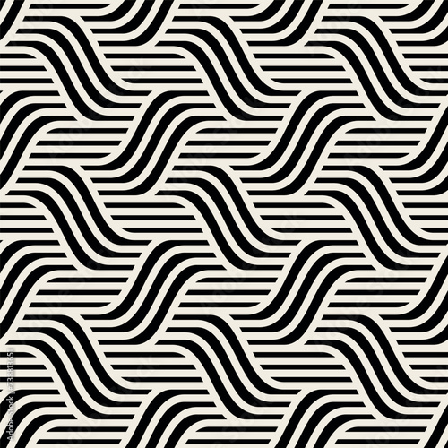 Wall mural vector seamless pattern with geometric waves. endless stylish texture. ripple monochrome background.