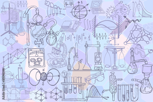 The watermark will not be included on Wall mural.: Vector seamless pattern with sketch elements related to science or education - physics or chemistry a