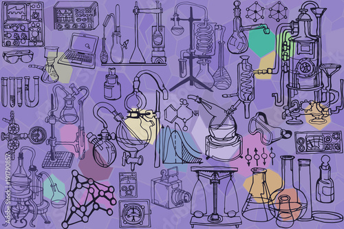 The watermark will not be included on Wall mural.: Vector seamless pattern with sketch elements related to science or education - physics or chemistry a