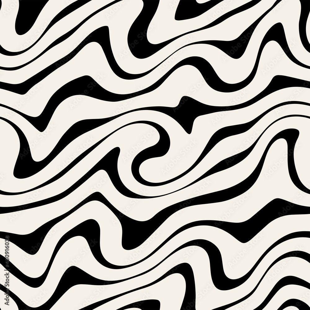 Wall mural vector seamless pattern. abstract striped texture with bold monochrome waves. creative background wi