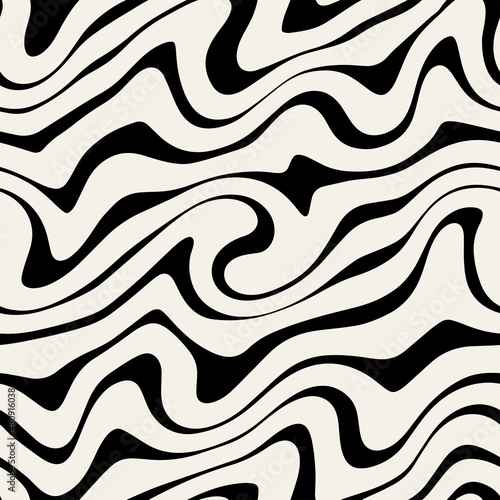 The watermark will not be included on Wall mural.: Vector seamless pattern - abstract striped texture with bold monochrome waves - creative background wi