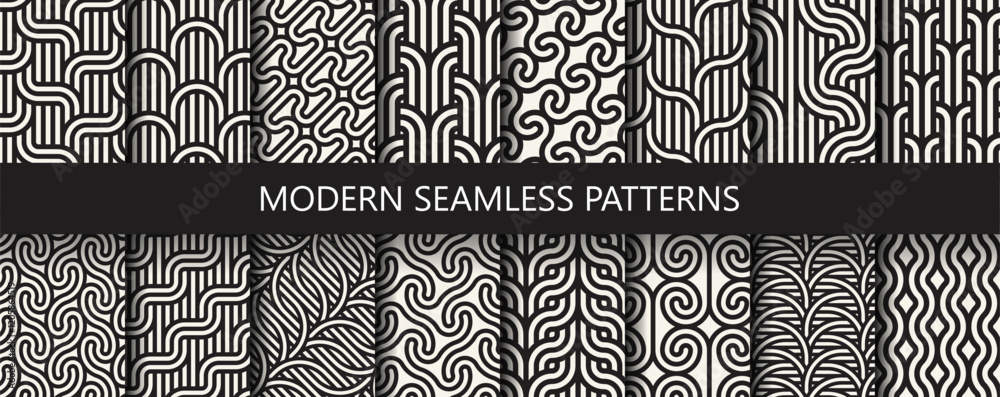 Wall mural vector set of 16 geometric linear patterns. collection of seamless modern textures for your design.