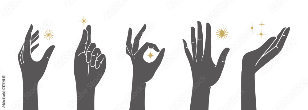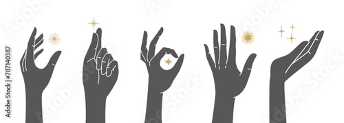 The watermark will not be included on Wall mural.: Vector set of abstract logo design template in simple linear style - holding hands gestures - tattoo