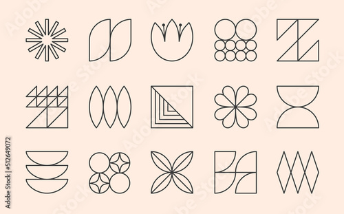The watermark will not be included on Wall mural.: Vector set of bauhaus linear emblems or symbols - modern brutalist objects and elements in trendy swis