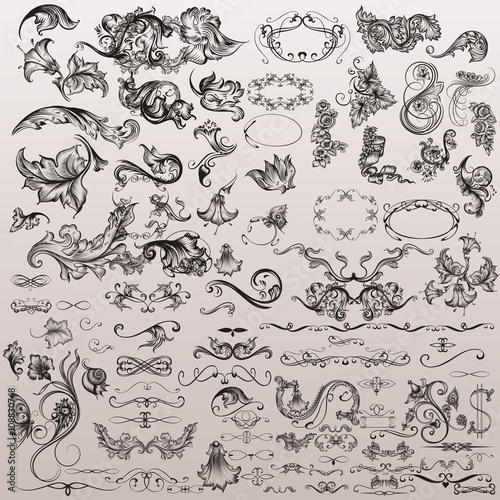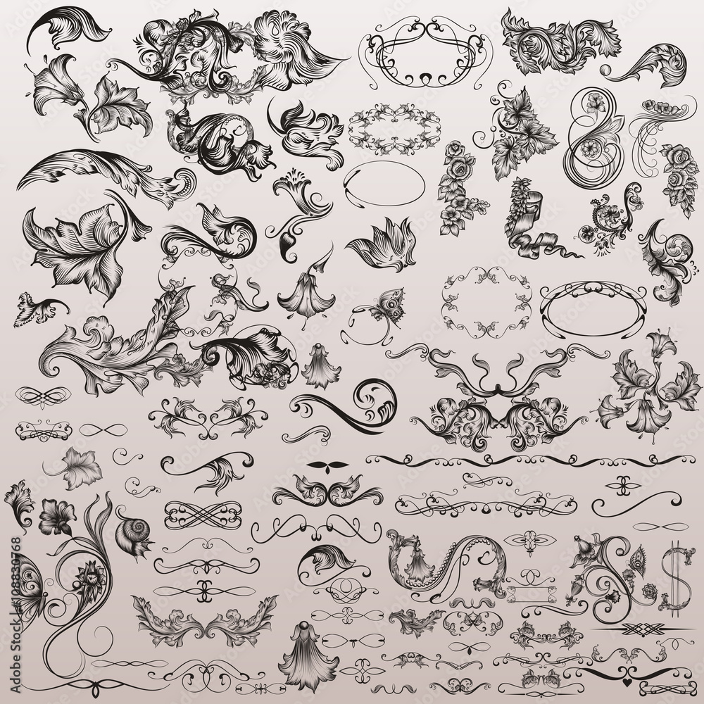 Vector set of calligraphic elements for design - calligraphic vecWall mural