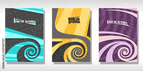 The watermark will not be included on Wall mural.: Vector set of colorful covers, 3 layouts of design brochure with spiral abstract pattern and copy sp