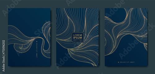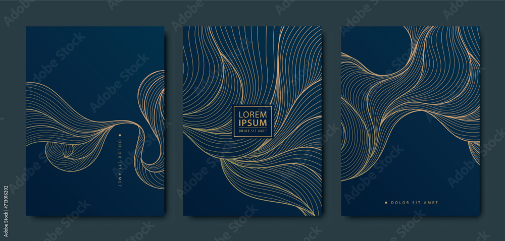 Wall mural vector set of gold pattern backgrounds, wave design curve templates, elegant linear graphic. dark el