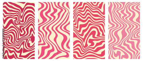 The watermark will not be included on Wall mural.: Vector set of groovy wavy vertical posters - twisted and distorted backgrounds in trendy 70s retro psy