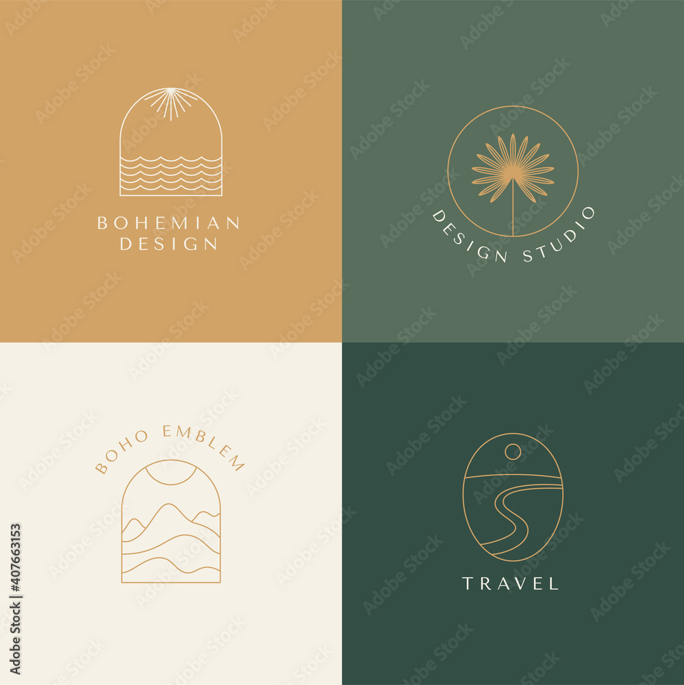 Vector set of linear boho icons and symbols - sun logo design templates - abstract design elementsWall mural