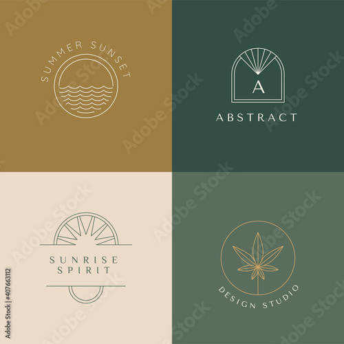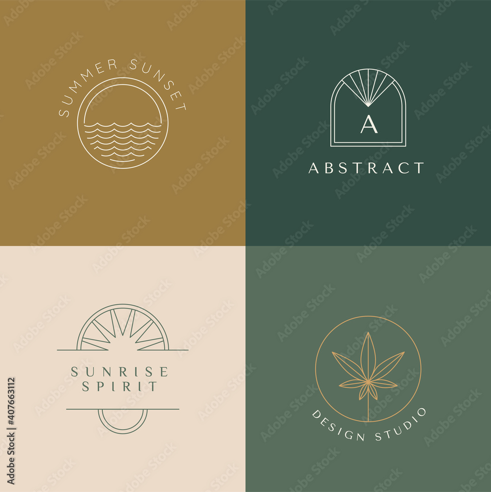 Vector set of linear boho icons and symbols - sun logo design templates - abstract design elementsWall mural