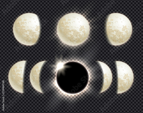 The watermark will not be included on Wall mural.: Vector set of moon phases and eclipse