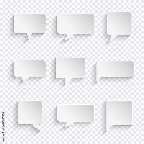 The watermark will not be included on Wall mural.: Vector set of paper white speech bubble icons with shadows