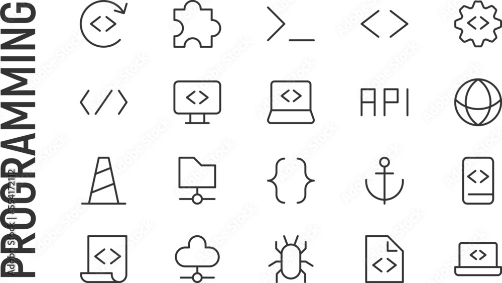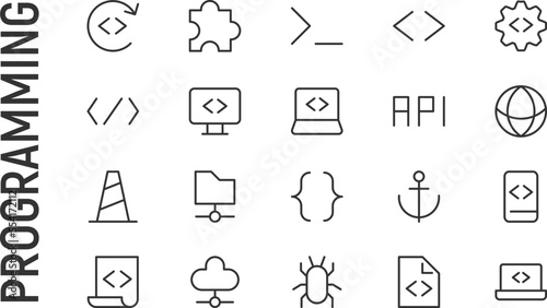 The watermark will not be included on Wall mural.: Vector set of programming thin line icons -