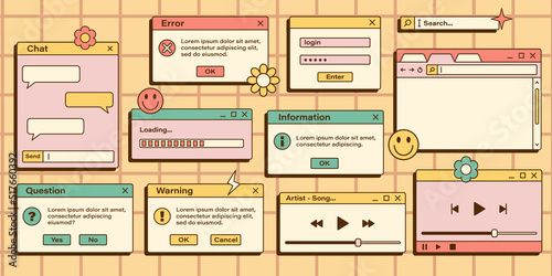 Wall mural vector set of retro vaporwave computer interface. vintage browser and dialog window templates. vecto - Wall murals Wall mural vector set of retro vaporwave computer interface. vintage browser and dialog window templates. vecto - Wall murals