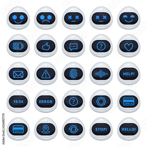 The watermark will not be included on Wall mural.: Vector set of robot emoticons - collection of cyborg characters with different interface messages in