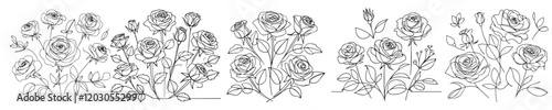 The watermark will not be included on Wall mural.: Vector set of roses with continuous line style