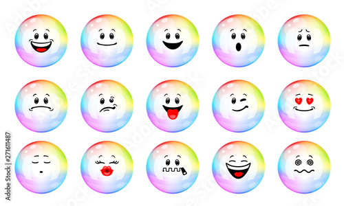 Wall mural : Vector set of soap bubble emoticons - collection of characters of colorful soap bubble with different