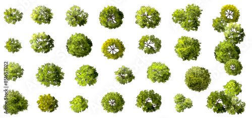 The watermark will not be included on Wall mural.: Vector set of top view green tree for outdoor plan or map and architecture drawing, elements for env