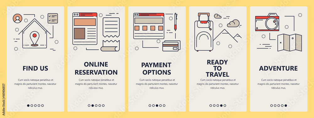 The watermark will not be included on Wall mural.: Vector set of vertical banners with travel concept elements in linear style design - thin line flat d
