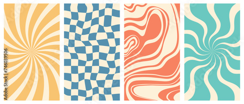 Wall mural vector set of vertical groovy poster in trendy 70s style. twisted and distorted retro backgrounds. v