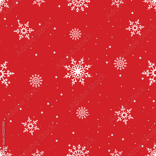 Wall mural vector snowy snowflake flakes seamless pattern winter pattern red background - Wall murals Wall mural vector snowy snowflake flakes seamless pattern winter pattern red background - Wall murals