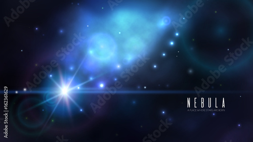 Wall mural vector space background with dark blue nebula and bright stars. fantasy scientific astronomical illu - Wall murals Wall mural vector space background with dark blue nebula and bright stars. fantasy scientific astronomical illu - Wall murals