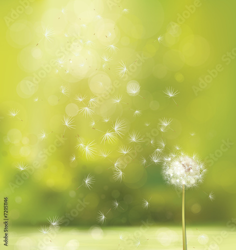 The watermark will not be included on Wall mural.: Vector spring background with white dandelion -