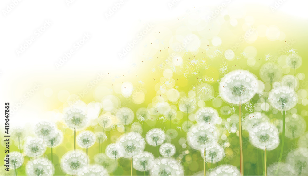 The watermark will not be included on Wall mural.: Vector spring bokeh background with white dandelions -