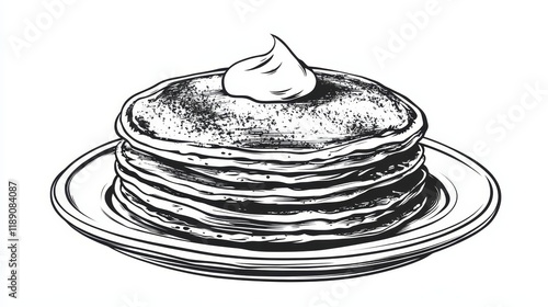 The watermark will not be included on Wall mural.: Vector style coloring page featuring a single pancake outline in black and white design