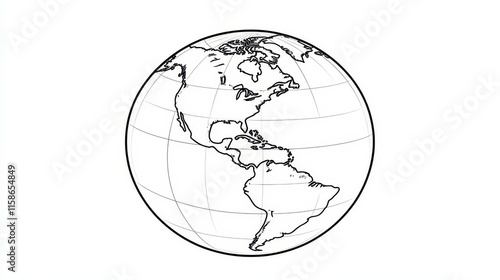 Wall mural vector style coloring page single globe outline with black contours on white background - Wall murals Wall mural vector style coloring page single globe outline with black contours on white background - Wall murals
