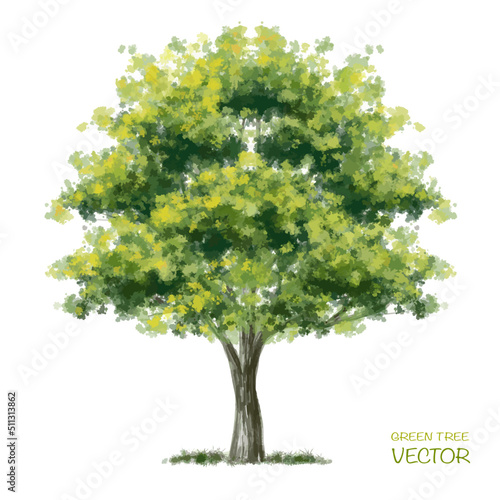 The watermark will not be included on Wall mural.: Vector watercolor of tree side view isolated on white background for landscape and architecture draw