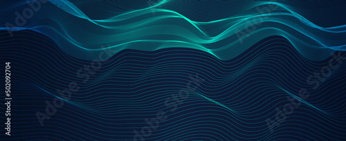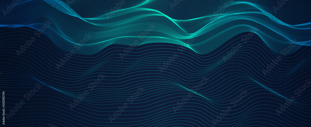 Wall mural vector wave lines dynamic in blue green color light flowing on black background for concept of music