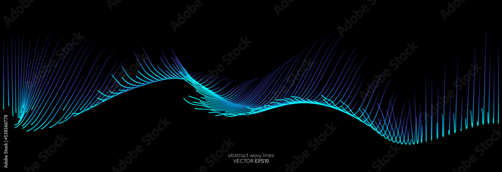Wall mural : Vector wave lines smooth flowing dynamic blue green gradient light isolated on black background for
