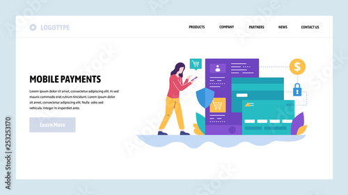 Vector web site design template - online shopping and mobile phone secure payments - landing page concWall mural