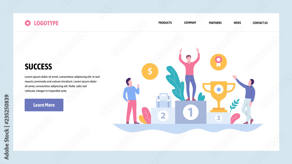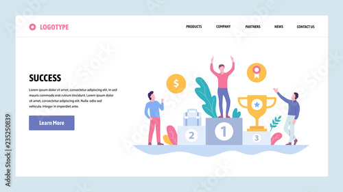 Wall mural : Vector web site gradient design template - business success, winner on the top position with reward -
