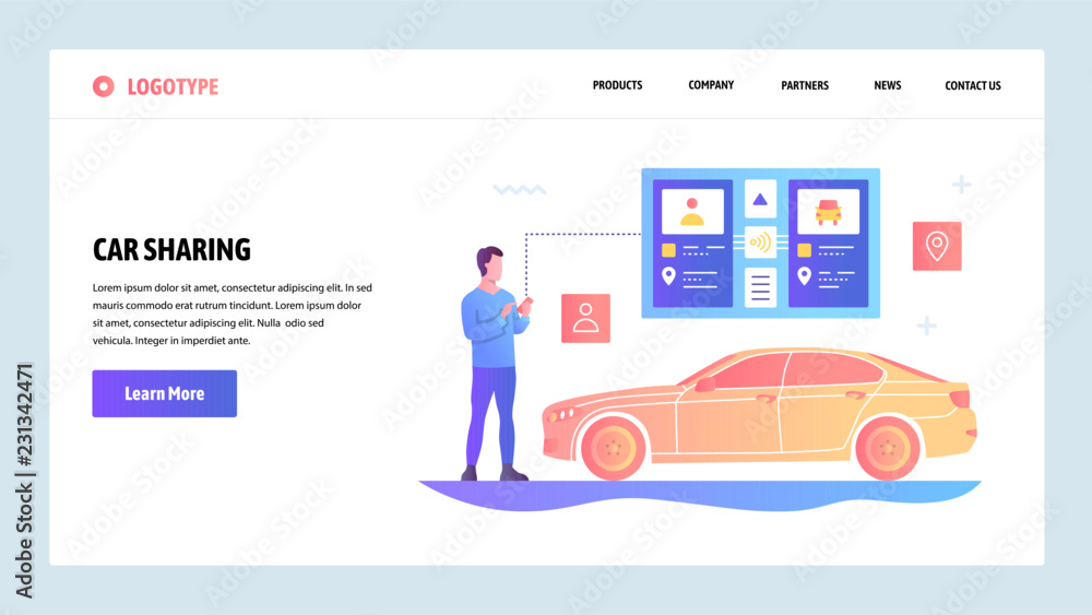 Wall mural vector web site gradient design template. car sharing and taxi app. landing page concepts for websit