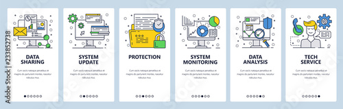Wall mural : Vector web site linear art onboarding screens template - computer services data update, analysis and