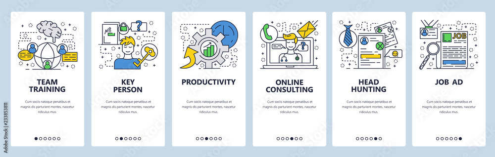 Wall mural : Vector web site linear art onboarding screens template - head hunting and job advertising - menu banne