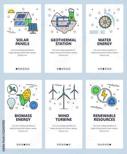 Wall mural : Vector web site linear art onboarding screens template - renewable alternative energy sources and pow