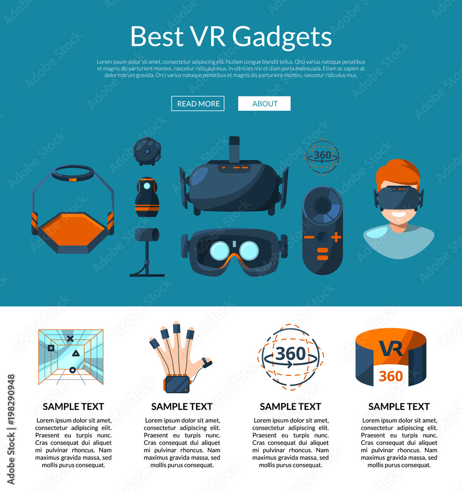 Wall mural : Vector website page template with flat style virtual reality elements