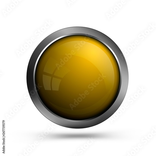 The watermark will not be included on Wall mural.: Vector yellow glass round button with metal frame - button for web design, interface design, apps and
