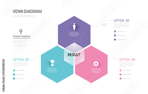 Wall mural : Venn diagram infographic chart template for business 3 steps presentation with glassmorphism button
