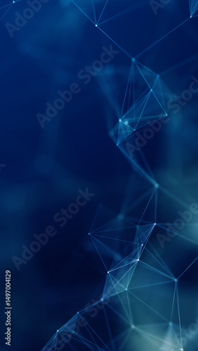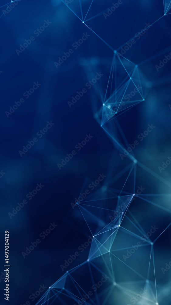 Vertical abstract tech background in blue featuring network nodes and polygonal connections, ideal fWall mural