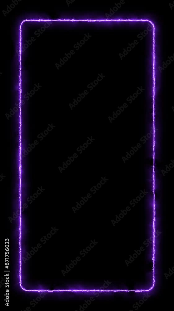 The watermark will not be included on Wall mural.: Vertical animated frame border with purple energy effect and subtle glow - seamless loop - copy space,