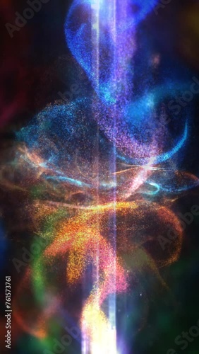 The watermark will not be included on Wall mural.: Vertical blue and gold particle collision 4k loop features a rainbow of colored particles with a foc