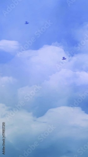 The watermark will not be included on Wall mural.: Vertical flock of birds flying in the clouds 4k loop features birds flying across the sky with cloud