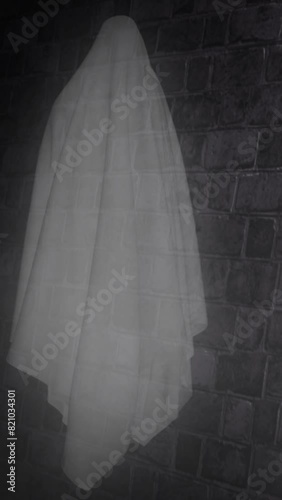 Wall mural : Vertical ghost floating along dark brick wall 4k loop features a floating ghost flying down a dark h