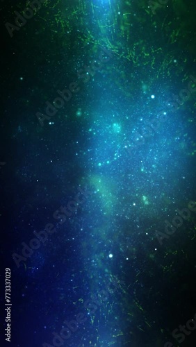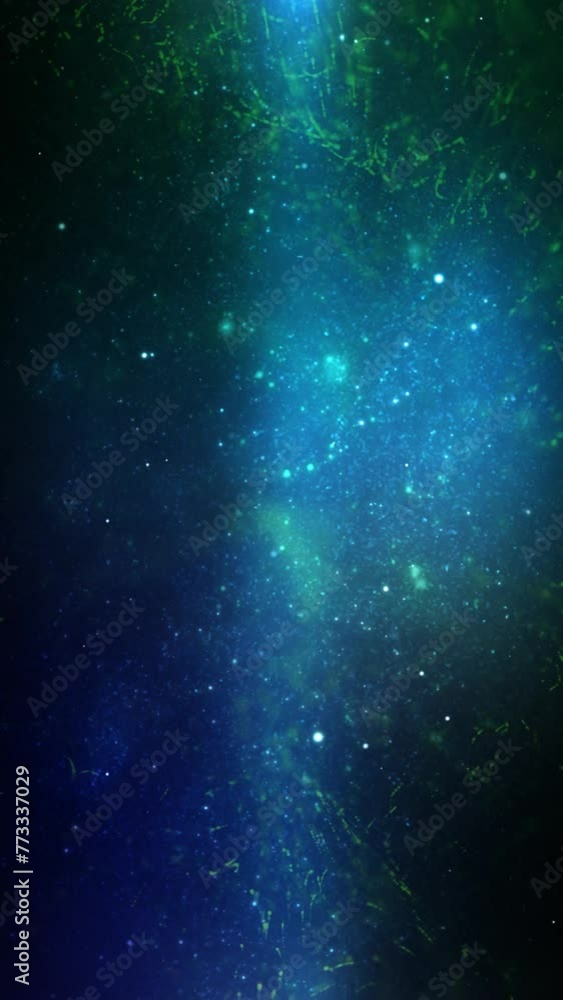 Wall mural : Vertical green and cyan particle atmosphere flight 4k loop features a camera view flying into differ