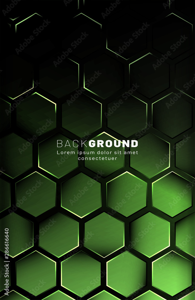 Wall mural vertical hexagon background. gradient color light pattern with dark background technology style. hon