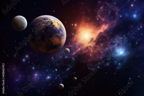 Vertical image of dark blue cosmic space background with multiple stars, created using generative aiWall mural